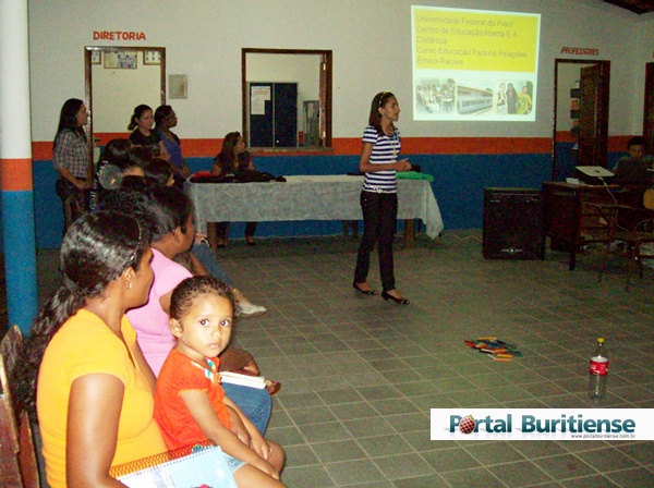 Publicado por Gildazio em 04 fevereiro 2011Na noite de ontem, dia 03 de fevereiro, na Unidade Escolar Jonas Escórcio Alexandrino que fica na localidade Barra do Longá, os alunos Lucélia Miranda, Geniana Silva, Gersiana Silva, Quésia Alves, Cibele Lima, Francisca Santos, Liliamy Val e Leiliane Val do curso de aperfeiçoamento Educação para as Relações Étnico-Raciais, realizaram palestras e atividades motivacionais sobre a temática: “Discriminação Racial, Preconceito Racial e Comportamento Social”, o propósito da realização desse trabalho foi requisito para o trabalho final do curso acima citado que é promovido pela Universidade Aberta do Brasil no Polo de Buriti dos Lopes. O público presente foi composto pelos alunos do Programa Pró-Jovem Rural e do Programa Alfabetização Solidária, o trabalho teve o acompanhamento dos professores tutores presencias Suzita Silva e Odair Santos, no final das apresentações houve uma confraternização entre os participantes.