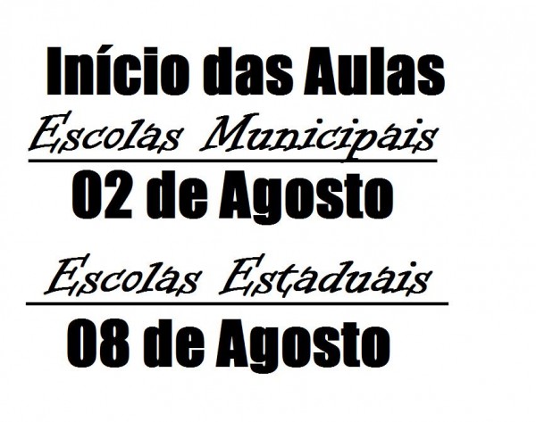 Publicado por Gildazio em 28 julho 2011Após um breve período de folga, as escolas já se preparam para recomeçarem as atividades escolares. Assim como aconteceu no início do ano letivo, as Unidades Escolares da Rede Municipal possuirão datas diferentes da Estadual para retomada das aulas. Isso se deve a vários motivos internos das secretarias e de mobilizações dos professores, como a greve dos professores, que adiou em uma semana o recesso de meio de ano (férias).
