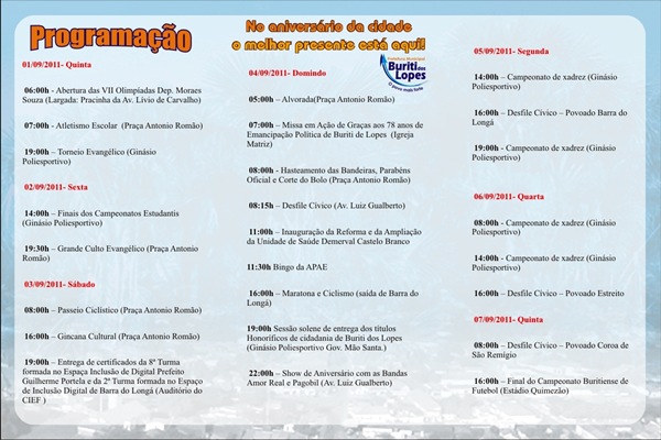 Programação do Aniversario de Buriti dos Lopes
