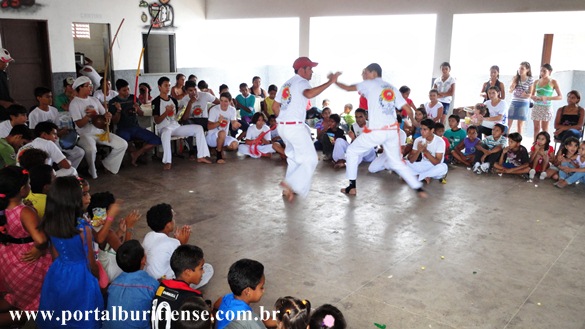 Além de outras atividades lúdicas conduzidas pelos professores, teve a participação do grupo de capoeira de Buriti dos Lopes, que fez uma belíssima apresentação.