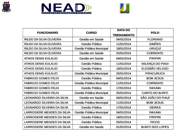 O NEAD – Núcleo de Ensino a Distância da UESPI, Universidade Estadual do Piauí, realizará treinamentos no início de 2014 com os alunos dos cursos do PNAP, Plano Nacional de Administração Pública. São eles:  Gestão em Saúde, Gestão Pública e Gestão Pública Municipal. Estes treinamentos terão carga horária de 4 horas e servirão para que os alunos tenham a orientação necessária para utilizar as ferramentas da Avamoodle, plataforma de software livre adotada pela CAPES para os cursos de ensino a distância em todo o Brasil.