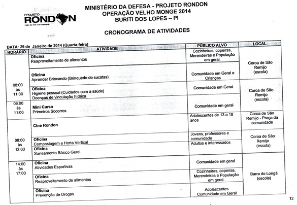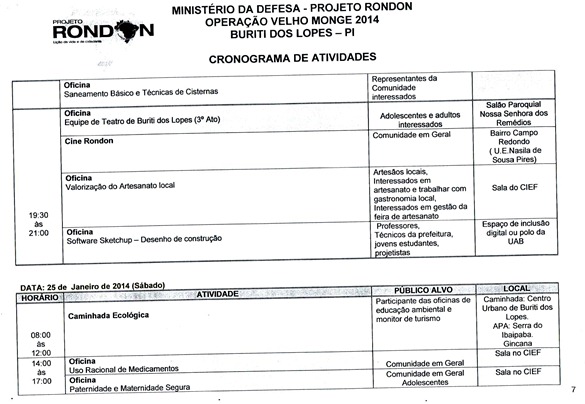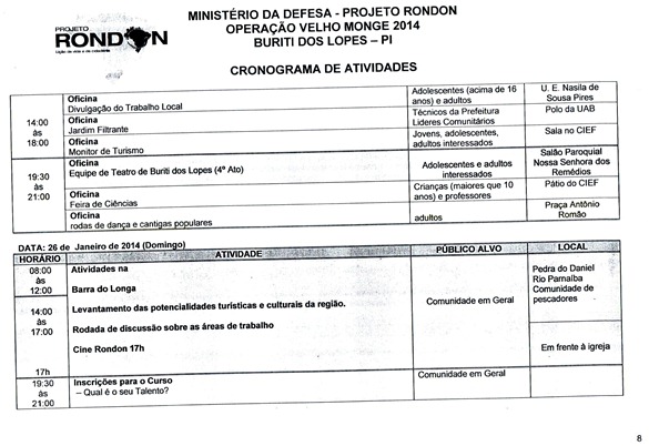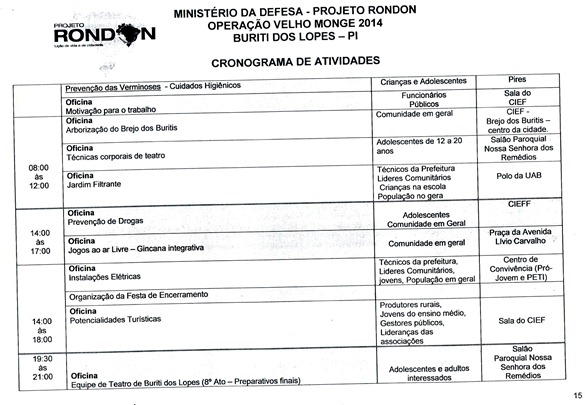 Divulgado Cronograma de Atividades que Serão Desenvolvidas pelo Projeto Rondon em Buriti dos Lopes