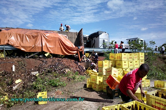 O local já é famoso pela grande quantidade de acidentes que corriqueiramente costumam acontecer ali, desta vez foi um caminhão da cervejaria Nova Schin. O caminhão estava carregado e tinha como destino a cidade de Parnaíba, na madrugada desta sexta (24) o motorista perdeu o controle do veículo na Curva do Pirangi (BR 343) e tombou de lado espalhando a carga pela pista, acostamento e encosta da BR. O condutor saiu ileso do incidente e teve somente pequenas escoriações. No local, segundo os comentários que ouvimos, algumas pessoas se aproveitaram da situação para subtrair parte da carga e vende-la no comércio local.
