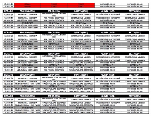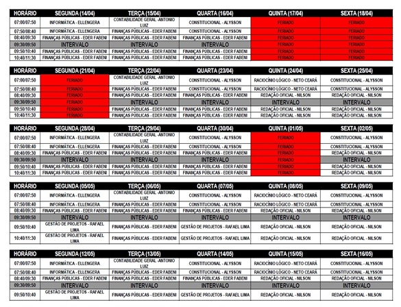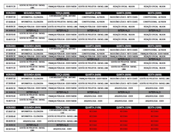 Horário de Funcionamento do curso: 7h as 11h30.