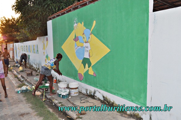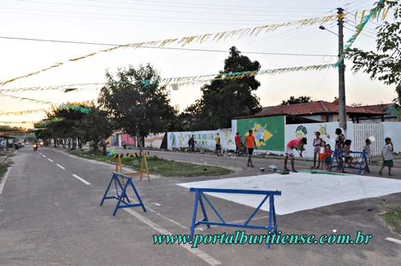 Faltando oito dias para o início dos jogos cada vez mais buritienses estão entrando no clima festivo da Copa do Mundo de 2014, moradores do bairro COHAB e adjacências organizaram-se para fazer uma campanha e enfeitar as principais ruas do local. É muito bonito ver a população se reunindo num objetivo comum, o entusiamo que vimos nestas pessoas ao longo dos últimos dias é simplesmente cativante e envolvente, todos colaboram ou ajudam no que é possível. Parabéns a estes buritienses, brasileiros de fé!