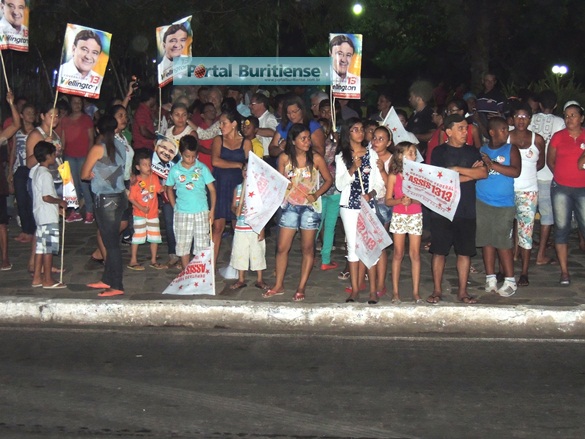Fiquei satisfeito com o que vi, ou seja o povo de Buriti unido por um interesse maior, o melhor para nosso estado. Independente da politica local ou liderancas municipais o povo do Buriti demonstra maturidade politica ao fazer esta opcao por apoio a WD para Governo do Piaui, na realidade este nao e um desejo de lider politico A ou B mas sim do POVO Buritiense WD governador de novo. Eu como sempre continuo votando como sempre votei DILMA,WD e o VEIM. O povo e a RAZAO.