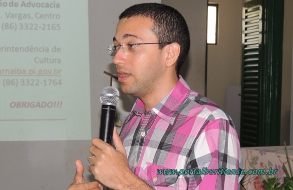 Outro buritiense que também se destacou como palestrante foi o Superintendente de Cultura da cidade de Parnaíba, o Advogado Helder Sousa, Helder falou sobre a Gestão do Patrimônio Cultural, Histórico, Artístico, Turístico e Paisagístico: Aspectos Legais e Técnicos da Preservação. Em sua apresenção mostrou a todos o quanto é importante que nos preocupemos desde já com valorização de nossa memória através da preservação dos nossos costumes, tradições, monumentos e casarões.