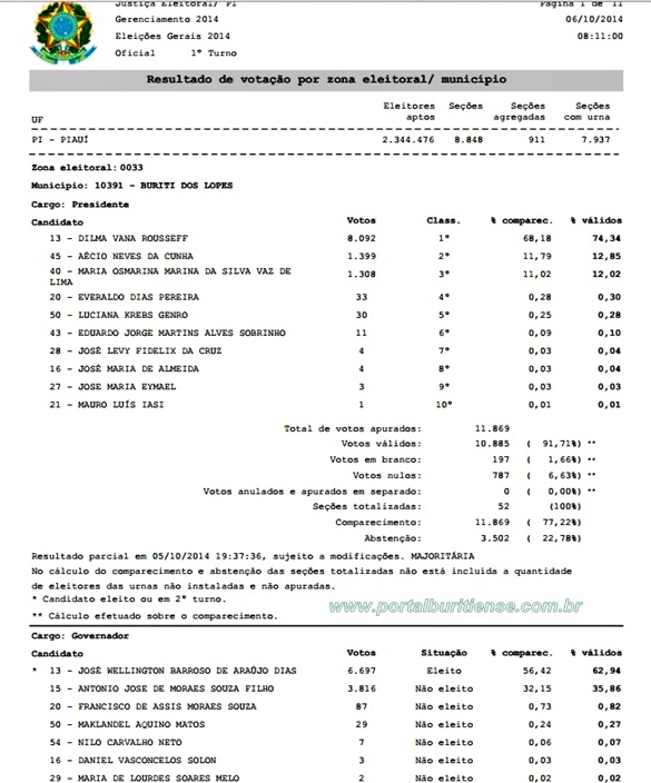 Confira o Resultado das Eleições 2014 em Cada Seção de Buriti dos Lopes