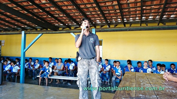 O policial aproveitou a oportunidade para alertar os educandos sobre o perigo das drogas, comentou sobre o trabalho da polícia na cidade enfatizando que é de conhecimento destes sobre a ação dos traficantes no aliciamentos de crianças e adolescentes para servirem como “aviões” na distribuição de entorpecentes. Disse aos alunos que tomassem cuidado com possíveis propostas de pessoas desconhecidas ou envolvidas com o crime, oferecendo-os ganhos fáceis ou outras vantagens. Finalizou destacando a importância da educação para a formação do cidadão dizendo que o futuro de cada um deles seria resultado que estariam fazendo hoje em sala de aula.