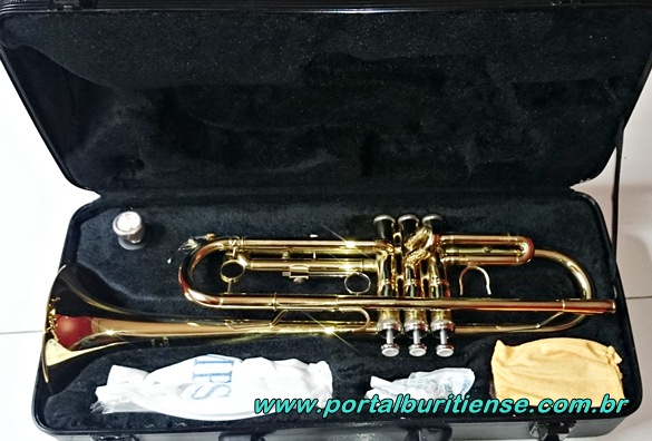 O instrumento, acima mostrado, é um trompete da marca Michael e foi adquirido graças a doação de duas pessoas que preferiram não divulgar o nome, para estes o simples fato de estarem colaborando com a musicalidade de jovens buritienses é o grande motivo para ajudar, agradecemos muito a generosidade destes beneméritos pois o ato de doar um instrumento para quem realmente precisa é de uma enorme grandiosidade à qual seremos sempre gratos. Muito obrigado!!!