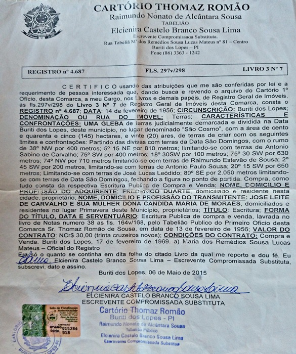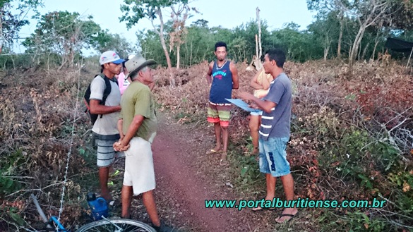 A pedido de um dos herdeiros de uma propriedade no entorno de nossa cidade que fica localizada nas margens da BR 343, sentido Buriti a Teresina, Frederício Duarte, acompanhamos o mesmo a um terreno que segundo este pertence a sua família e que estaria sendo invadido, ao chegar ao local indicado pelo denunciante como sendo parte dos 145 hectares de terras que que seria uma herança deixada por seu avô paterno, constatamos que de fato o local está sendo ocupado por inúmeras pessoas.