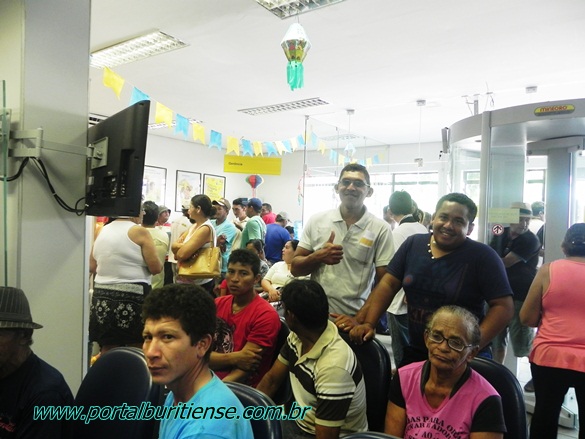 A agência do Banco do Brasil de Buriti dos Lopes programou uma bela surpresa para receber seus clientes e amigos nesta segunda (29), ao chegar na agência os usuários foram surpreendidos por uma recepção junina com música ao vivo com som de sanfona, triângulo e zabumba além de muitas comidas típicas que foram servidas ao longo de toda manhã. Aos idealizadores dessa bonita recepção os nossos parabéns!!!
