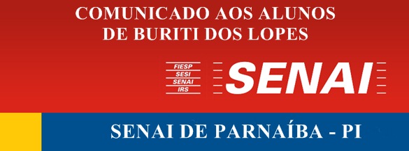O SENAI solicita aos alunos de Buriti dos Lopes que cursaram nesta cidade, nos anos de 2013 e 2014, os cursos de Costureiro Industrial, Pedreiro, Pintor e Eletricista ministrados por essa instituição, que se dirijam até à sede em Parnaíba para receberem seus respectivos certificados de conclusão de curso.