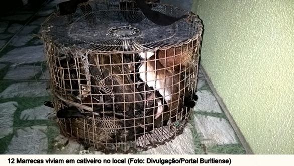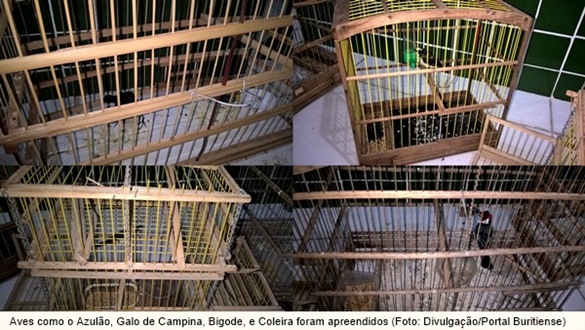 As gaiolas com aves como Azulão, Galo de Campina, Bigode, Coleira, estavam na residência de um morador da localidade. Foram encontradas também 11 marrecas viuvinhas e 01 marreca verdadeira, além de uma armadilha completa. No total, foram apreendidas 17 aves silvestres.
