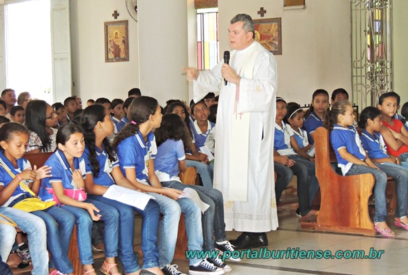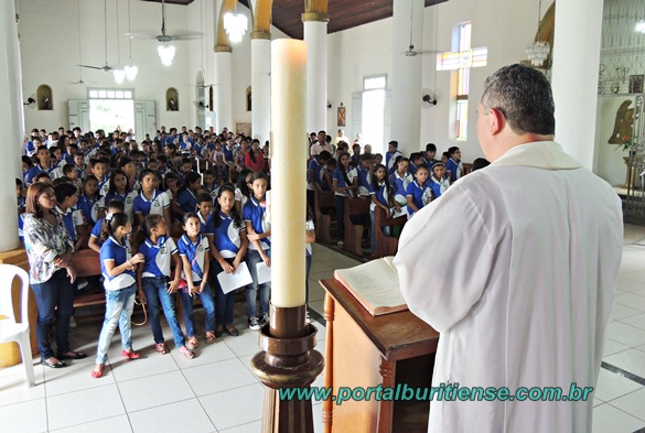 Neste sábado os alunos da Escola Municipal Maria Teresa de Jesus Castro Teles viveram uma manhã diferente, a escola organizou uma bela festa em comemoração a Páscoa. Logo cedo os alunos foram levados para a Igreja de Nossa Senhora dos Remédios onde o Pároco local, Pe. Paulo Jorge, havia preparado uma celebração toda especial voltada para o significado do tema, muito atentos e receptivos os estudantes ouviram nas palavras do sacerdote o real valor do que é comemorar a Páscoa.