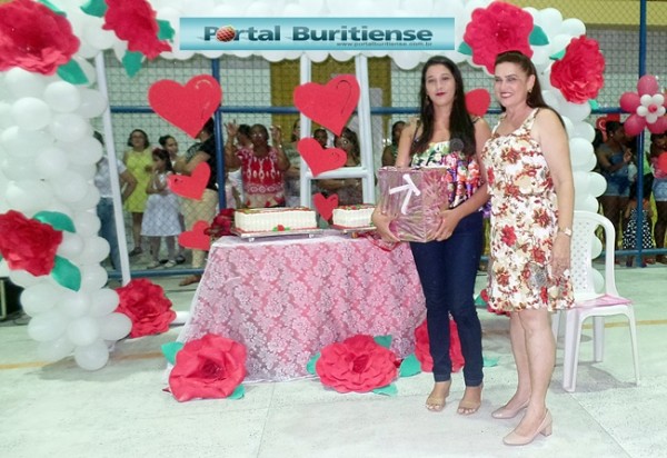 Publicado por Gildazio em 27 maio 2016 Na tarde da última quarta-feira (25/05), a Prefeitura de Buriti dos Lopes realizou no Centro de Atividades Culturais- CAESC, vinculado ao Centro Integrado de Educação Fundamental Dep. Moraes Sousa- CIEF, a festa em comemoração ao Dia das Mães. Todos os anos a data mais especial de todas é lembrada com muito carinho pela atual administração, muitas apresentações emocionaram e fizeram da festa inesquecível, além dos sorteios de muitos brindes para as mães e um lanche delicioso, sem faltar o grande momento para os parabéns às mães. O prefeito se pronunciou saudando a todos os presentes, pediu um minuto de silêncio em solidariedade à família do “Sr. Zé Melo” em seguida parabenizou as mães e agradeceu as equipes que se dedicaram na realização do evento. Veja algumas fotos da festa.