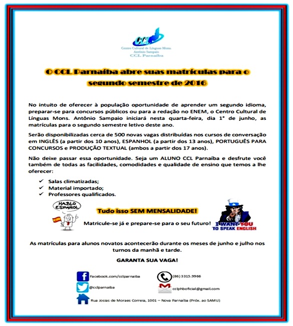 Início das Matrículas no Centro Cultural de Línguas – CCL