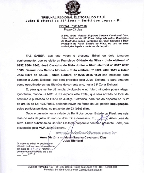 Cartório da 33ª Zona Divulga Indicados para Compor a Junta Eleitoral