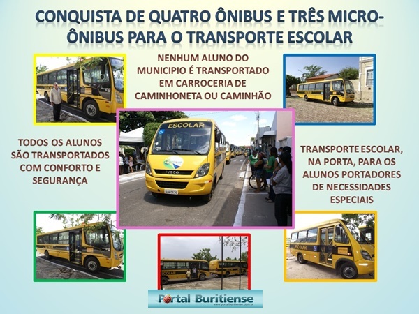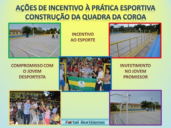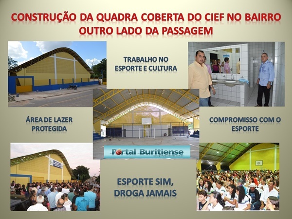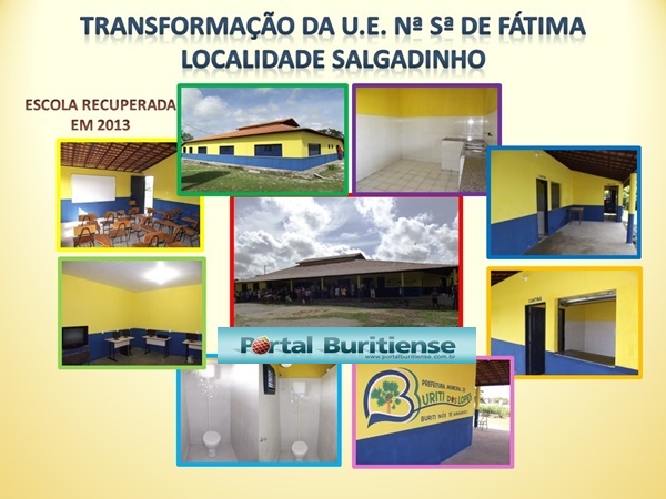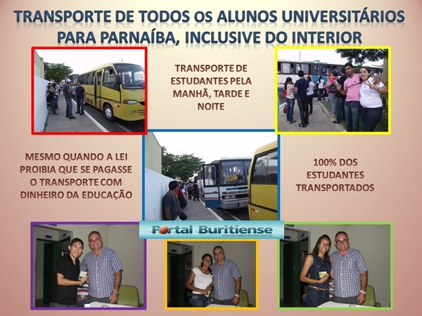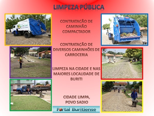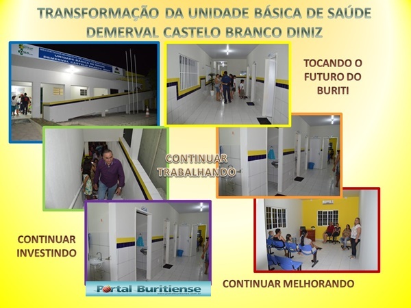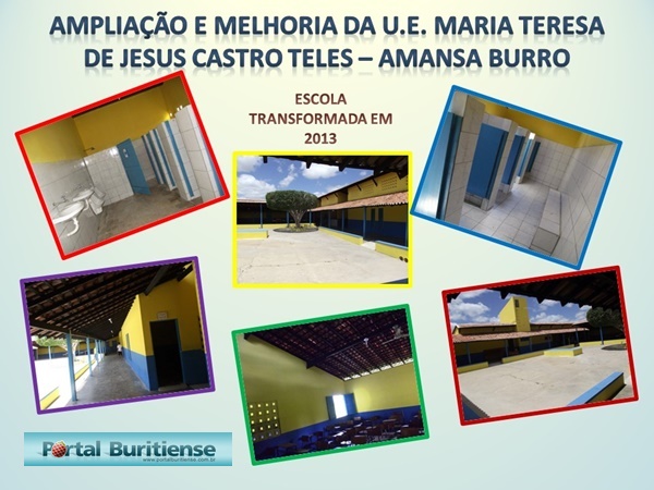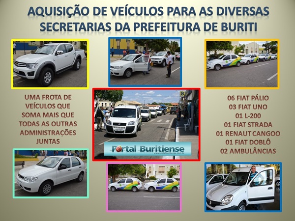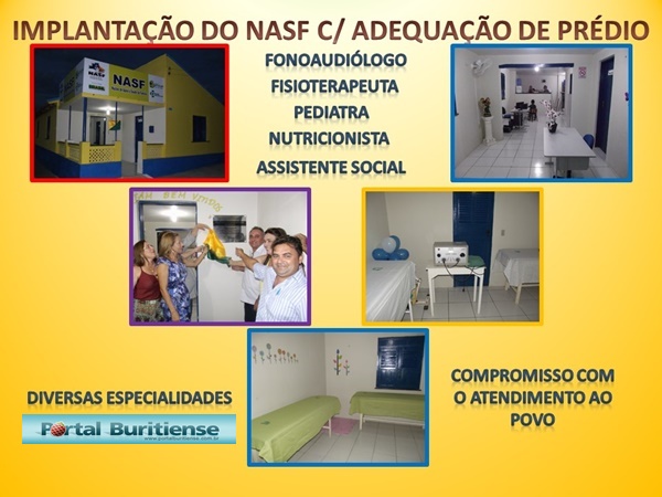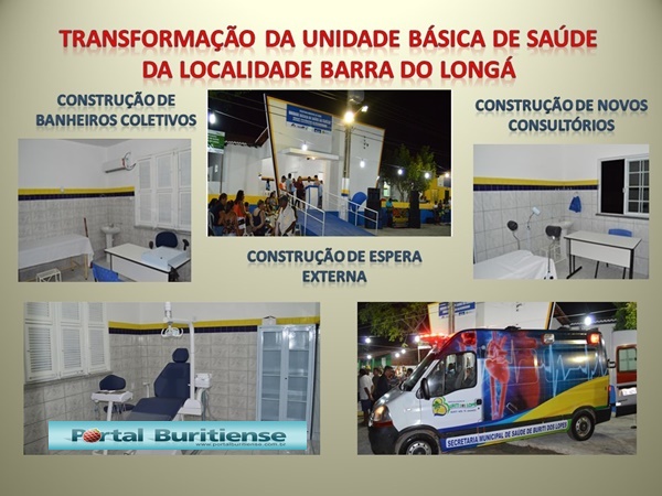 Grande investimento no esporte, Transporte na área da saúde, Ampliação e reforma da UE Maria Teresa (cidade),Reforma do Centro Integrado de Ensino Fundamental Dep. Moraes Sousa-CIEF (cidade), Ampliação e reforma da UE Nazila Pires (cidade), Ampliação e reforma da UE Tia Lúcia (cidade), Ampliação e reforma da UE Tia Gelma (cidade), Ampliação e reforma da UE Nossa Senhora de Fátima (localidade Salgadinho), Ampliação e reforma da UE José Lucas (localidade Coroa), Ampliação e reforma do PSF Mão Santa (cidade), Ampliação e reforma do PSF Joaquim Narciso (cidade), Execução do calçamento que dá acesso à UE Nazila Pires no ano de 2014, Ampliação e reforma da UE José Clementino de Sousa (localidade São Domingos), Ampliação e reforma do PSF da localidade Ponte do Jandira, Construção da praça da Localidade Ponte do Jandira, Execução da Estrada que liga a Localidade Ponte do Jandira à Várzea do Simão, Execução da Estrada que liga as Localidades Santa Rita a Branquinhas, Ampliação e reforma da UBS da Localidade Corôa de São Remígio, Ampliação e reforma da UBS da Localidade Salgadinho no ano de 2015, Ampliação e reforma da UE da Localidade Carrasco, Ampliação e reforma da UBS da Localidade Cadoz, Ampliação e reforma da UE da Localidade Cadoz, Ampliação e reforma da UE da Localidade Cedro, Ampliação e reforma da UE da Localidade Pé do Morro, Construção da base de atendimento do SAMU, Ampliação e reforma da UBS Demerval Diniz (Secretaria de Saúde), Ampliação e reforma da UBS da Localidade Estreito, Construção da UBS Dra Gildete Maria Duarte (cidade), Conclusão da construção do Terminal Rodoviário Roldão Rodrigues (cidade)no ano de 2016, Construção da quadra de esportes da Localidade Corôa de São Remígio, Construção do Ginásio Poliesportivo Chico Val (cidade), Implantação do sistema de abastecimento de água da Localidade Carrasco, Ampliação e reforma do PSF da Localidade Barra do Longá, Ampliação e reforma da UE da Localidade Passagem das Canoas, 5 ambulâncias novas, Mais de 30 unidades entre automóveis, ônibus e máquinas., Transporte, com recurso próprio, de quase 400 estudantes universitários, de Buriti para Parnaíba, inclusive da zona rural nos turnos manhã tarde e noite, Concurso público, Teste seletivo, Merenda escolar de qualidade, enxovais para mães carentes. E ainda