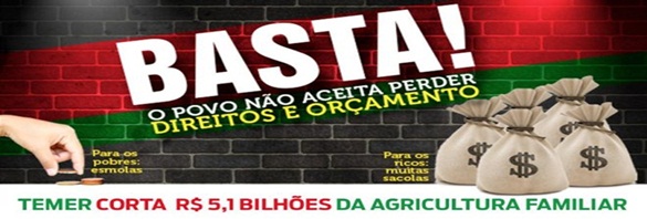 Governo Temer já cortou esse ano aproximadamente R$ 5,1 bilhões do orçamento para a Agricultura familiar