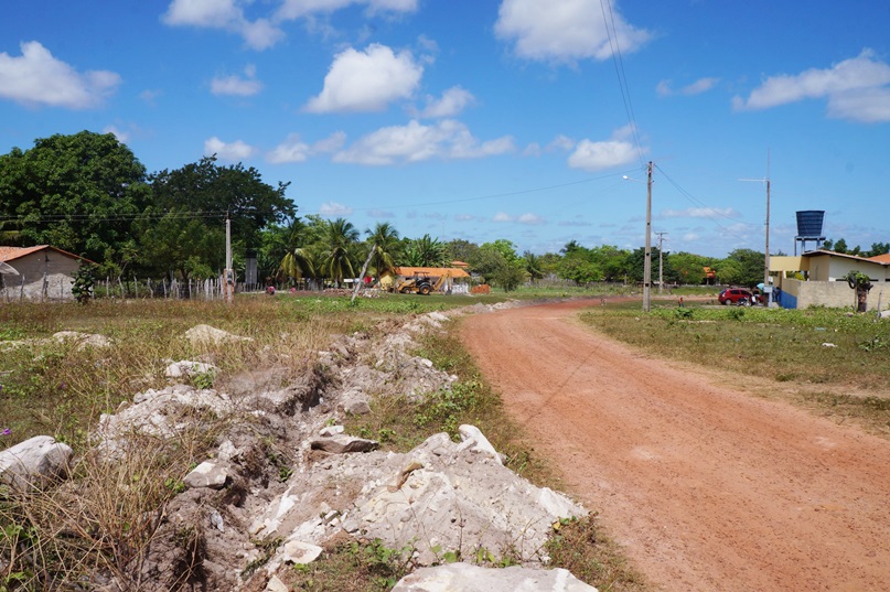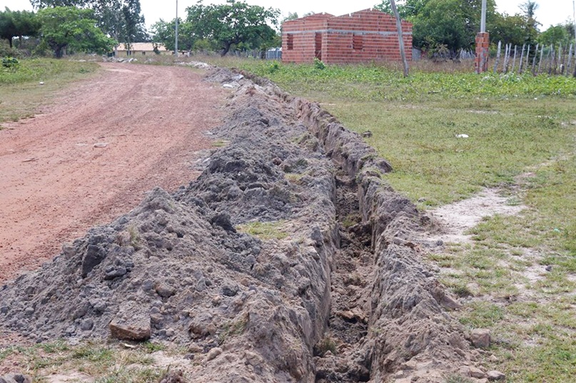 As escavações da rede de distribuição da comunidade estão em andamento, e logo à população dessa região vai ter água em seus domicílios.