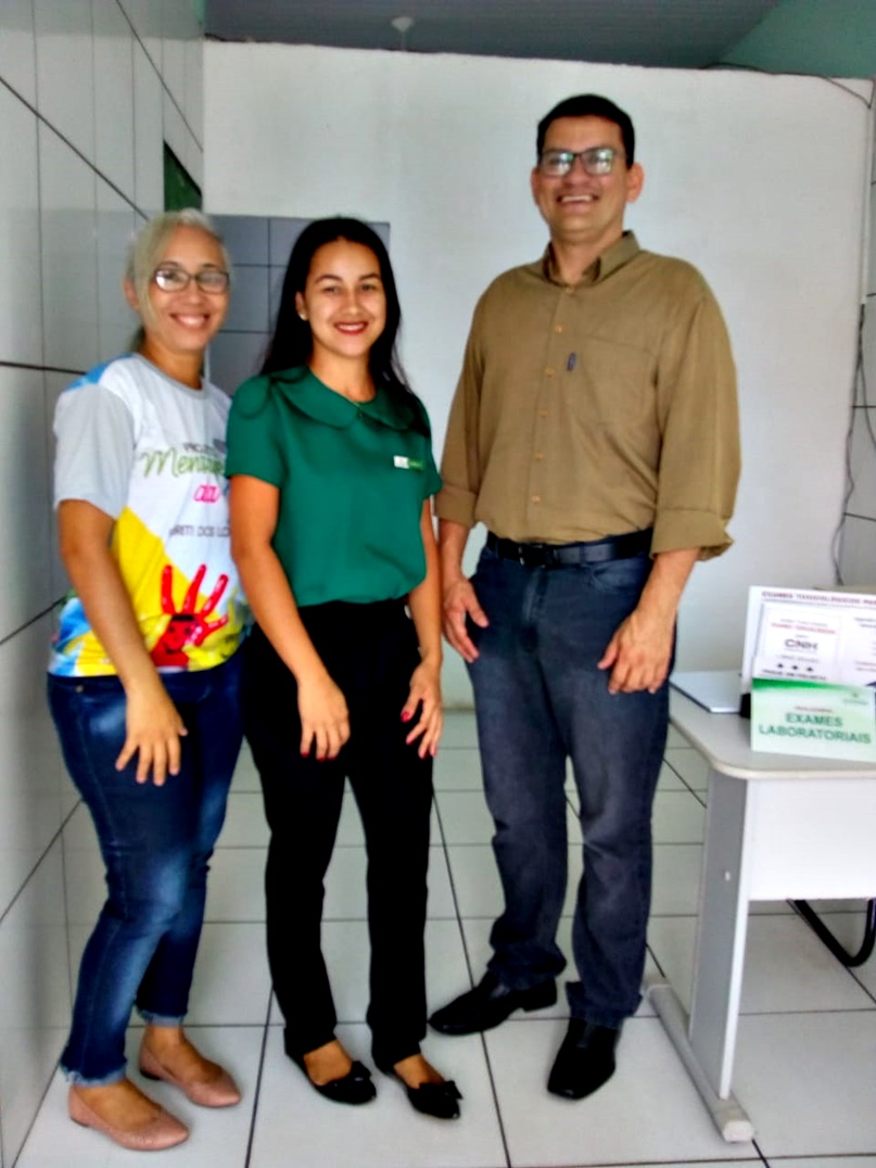 Nesta segunda (06/05) o Projeto Mensageiros da Paz fechou mais uma importante parceria. Desta vez, foi com o laboratório Santa Edwiges. Todos os beneficiários serão contemplados com os seguintes exames: hemograma, fezes e urina. Após fechar a parceria, a diretora do projeto Conceição Rodrigues posou para uma foto com o gerente do laboratório Carlos e a recepcionista Daniela.