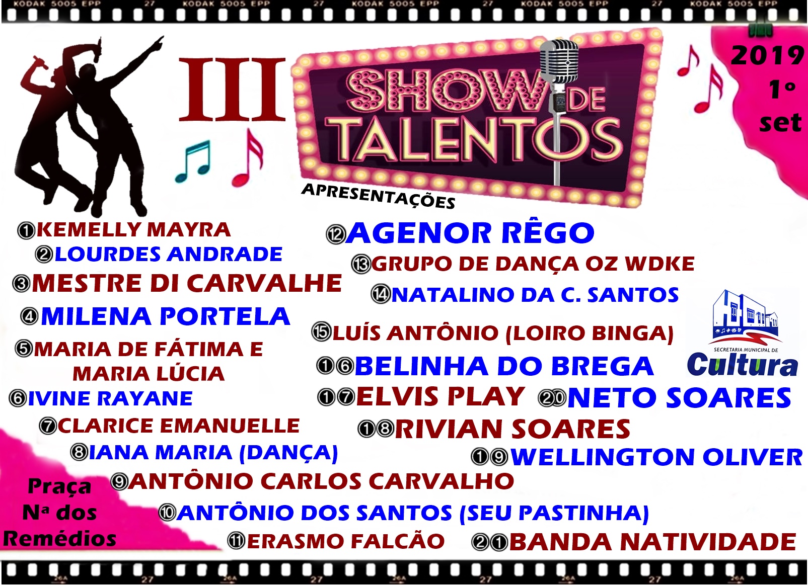 O Show de Talentos 2019 será realizado dia 1º de setembro às 19h na Praça Nossa Senhora do Remédios, centro de Buriti dos Lopes.