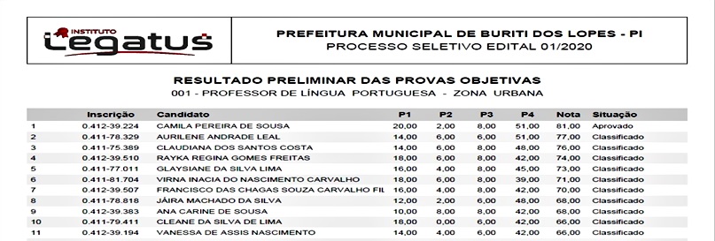 Instituto Legatus Divulga Resultado do Processo Seletivo de Buriti dos Lopes